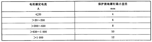 保護(hù)接地端子的螺釘和接地導(dǎo)體應(yīng)有足夠截面,保護(hù)接地螺釘最小直徑按表1。